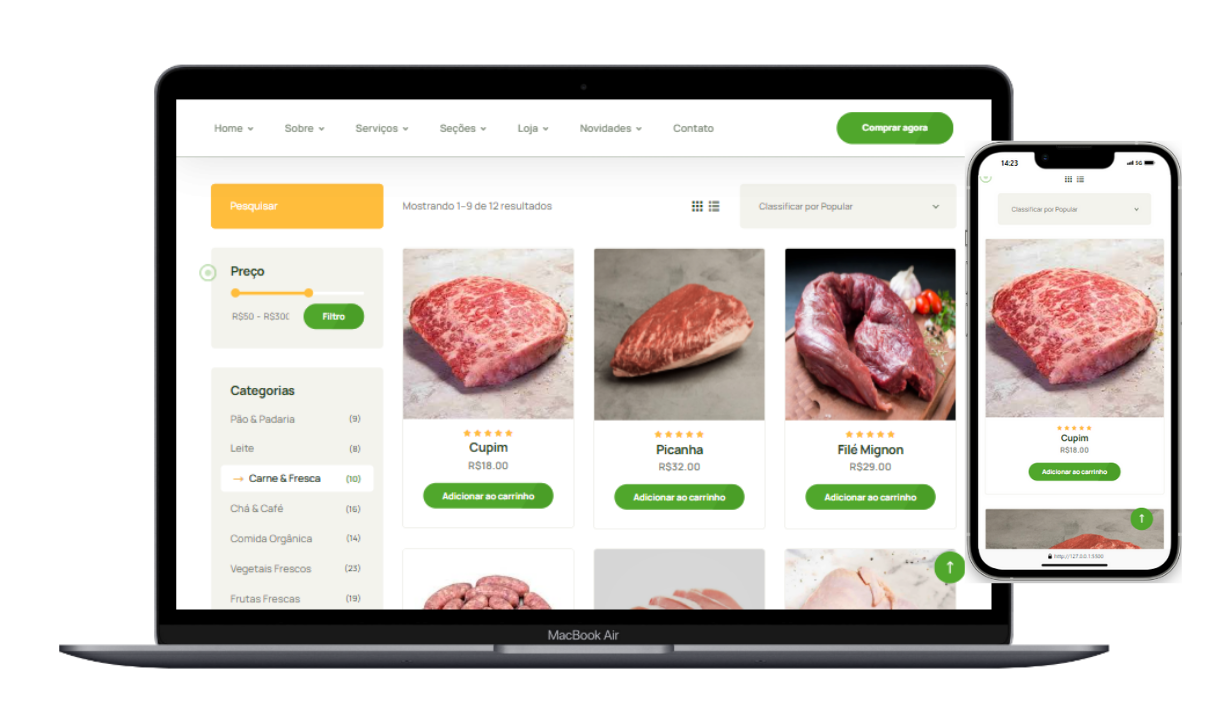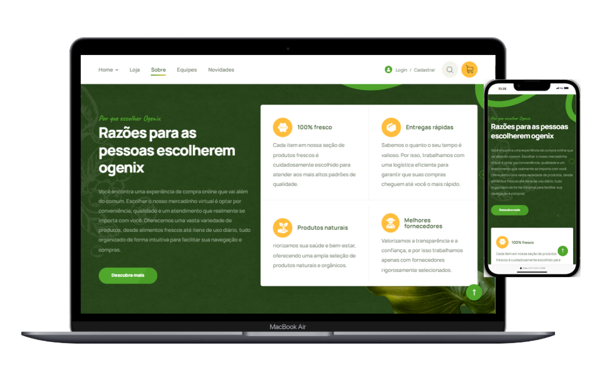 A plataforma foi projetada para ser acessível e conveniente, com uma experiência de compra fluida desde a busca por produtos até o checkout.